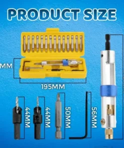 - A CSOMAG TARTALMA: 1 db félidős fúrócsavar, 8 db Phillips bit (2 db: PH0, PH1, PH2, PH3), 8 db laposfejű fúrófej (2 db: 1/8″ 3,2 mm, 5/32″ 4 mm, 3/16″ 4 mm, 3/16″, 14 x 4 mm). Süllyesztett bitek (3/32″ 2,4 mm, 1/8″ 3,2 mm), 1 x imbuszkulcs, 1 x tok (7,6 x 3 hüvelyk / 19,4 x 7,4 cm)