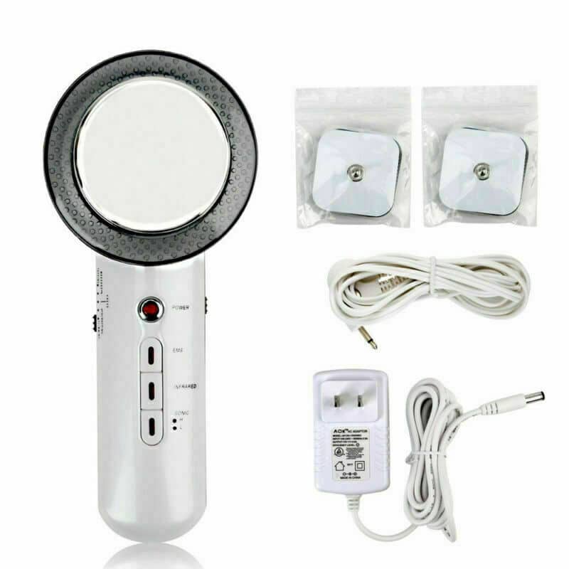 1x ultrahangos masszírozó, 1x hálózati adapter, 1x vezeték, 2x pad, 1x használati útmutató